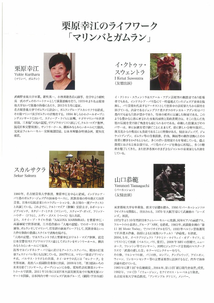 栗原幸江 スカルサクラ 名古屋音楽大学卒業生有志 (友情出演)I Ketut Suwentra 山口恭範