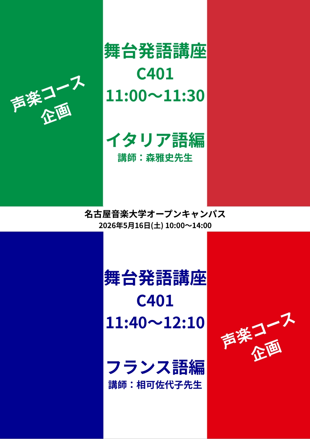 ◆ 舞台発語講座 イタリア語編、フランス語編 11:00~12:10