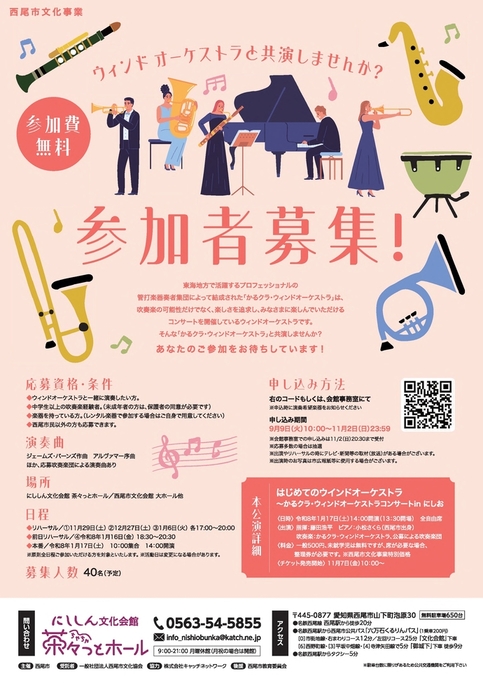 【吹奏楽】西尾市文化事業 参加者募集!ウィンドオーケストラと共演しませんか?