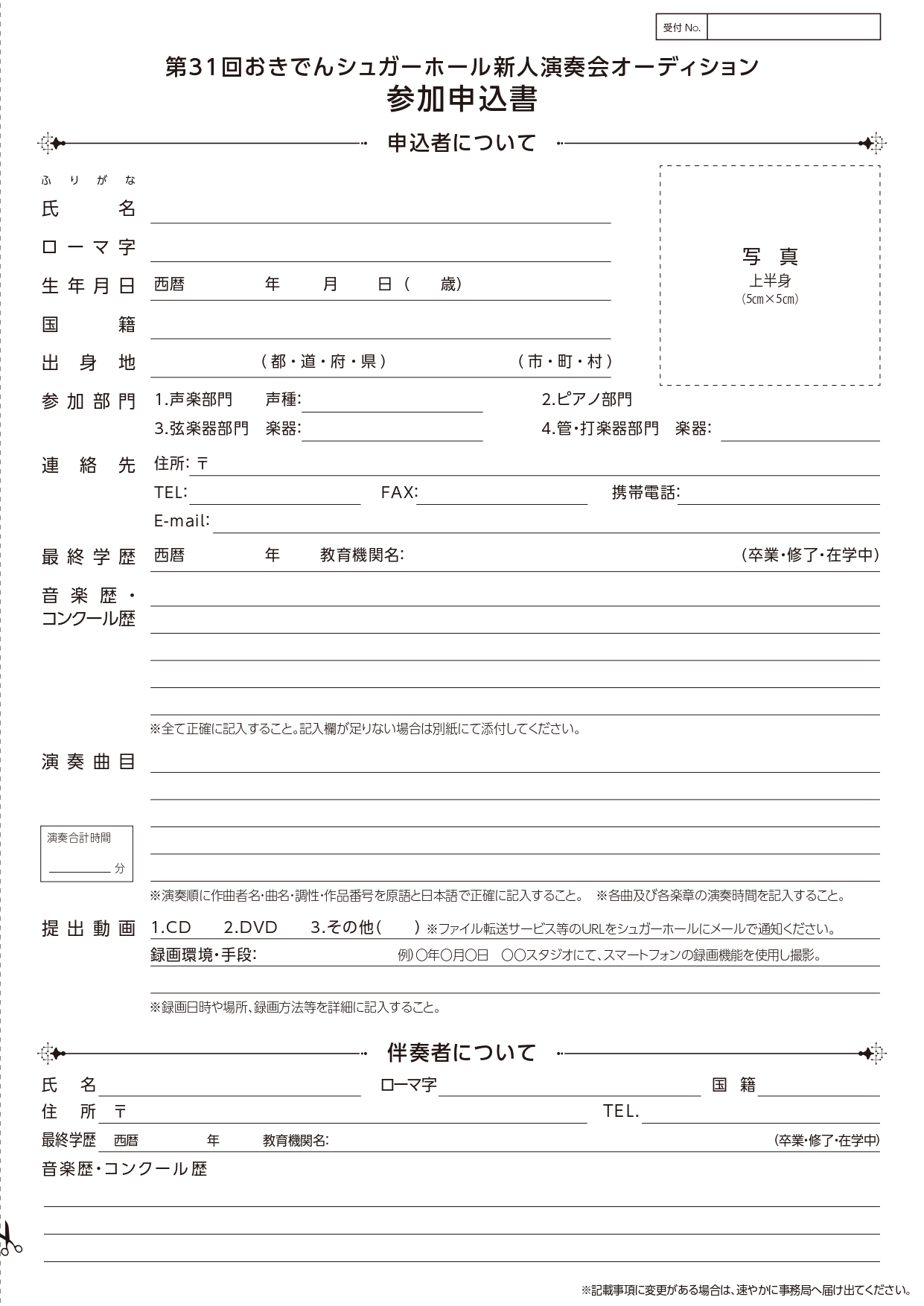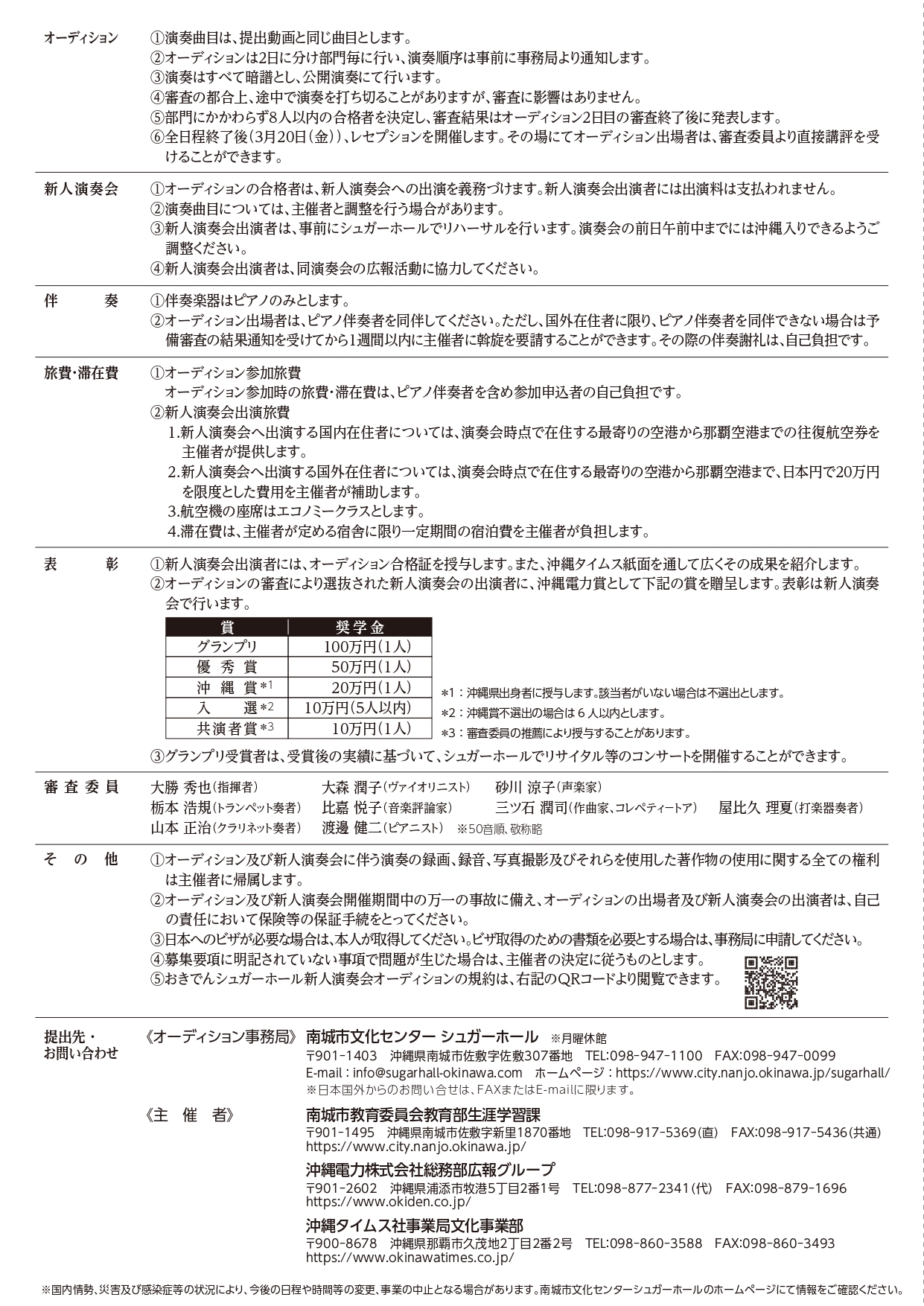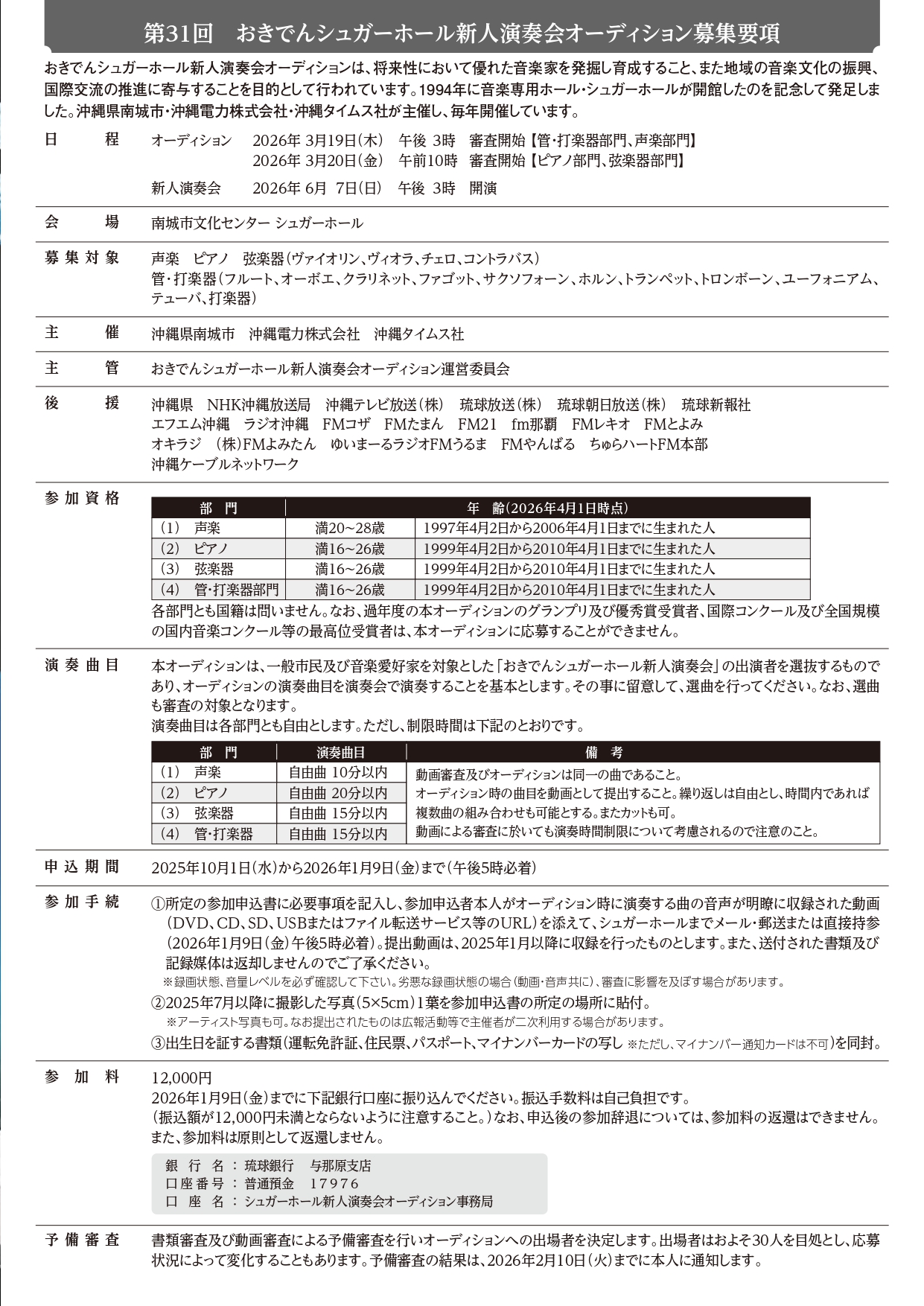 【声/Pf/弦/管/打】第31回おきでん シュガーホール新人演奏会 オーディション
