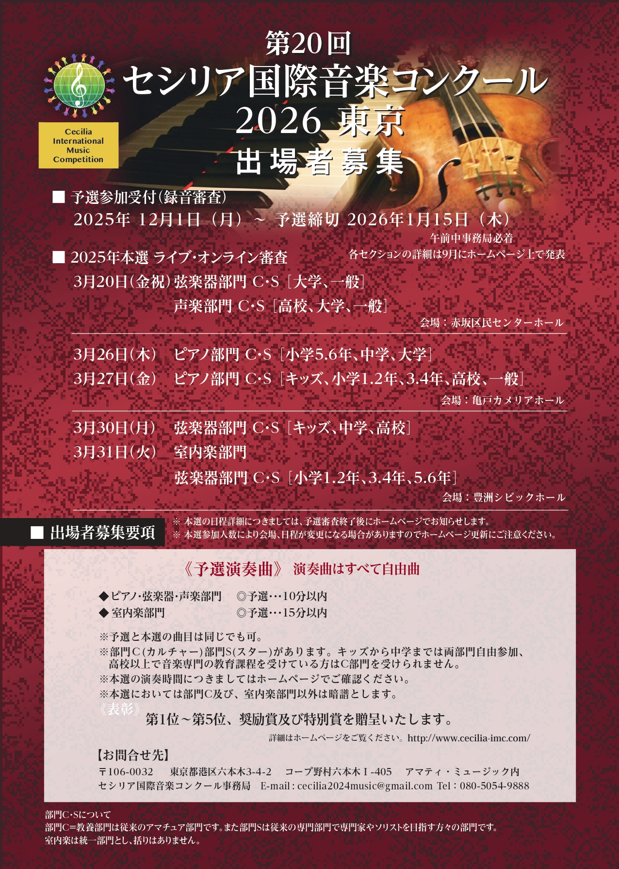 【弦/声/Pf/室内楽】第20回 セシリア国際音楽コンクール2026東京 出場者募集