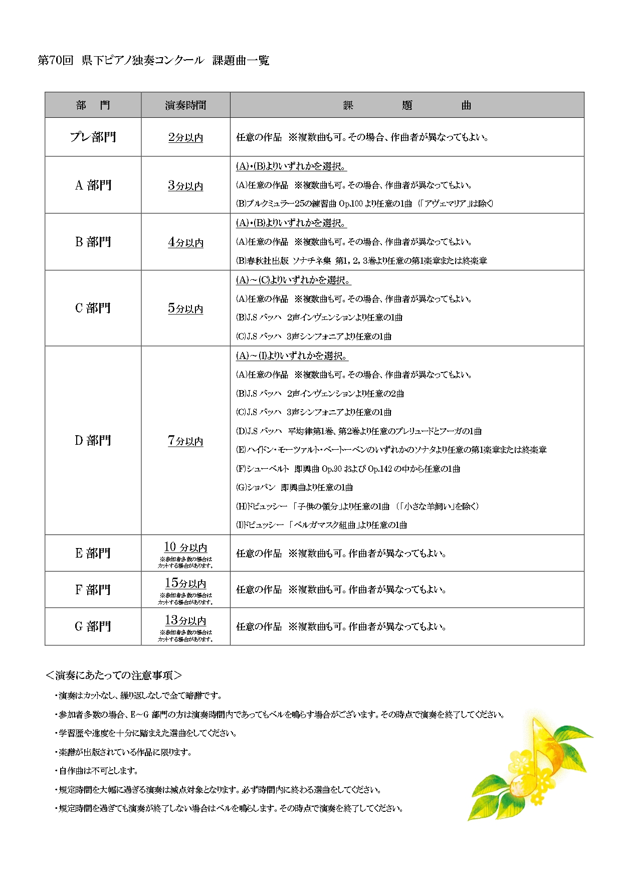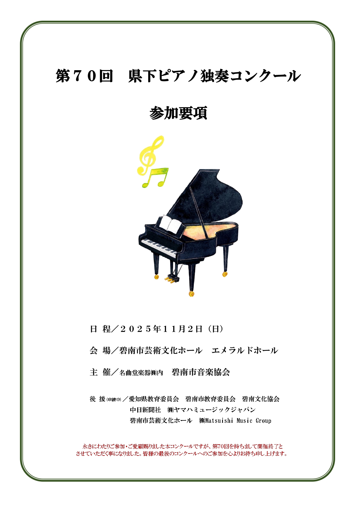 【Pf】第70回 県下ピアノ独奏コンクール 参加要項