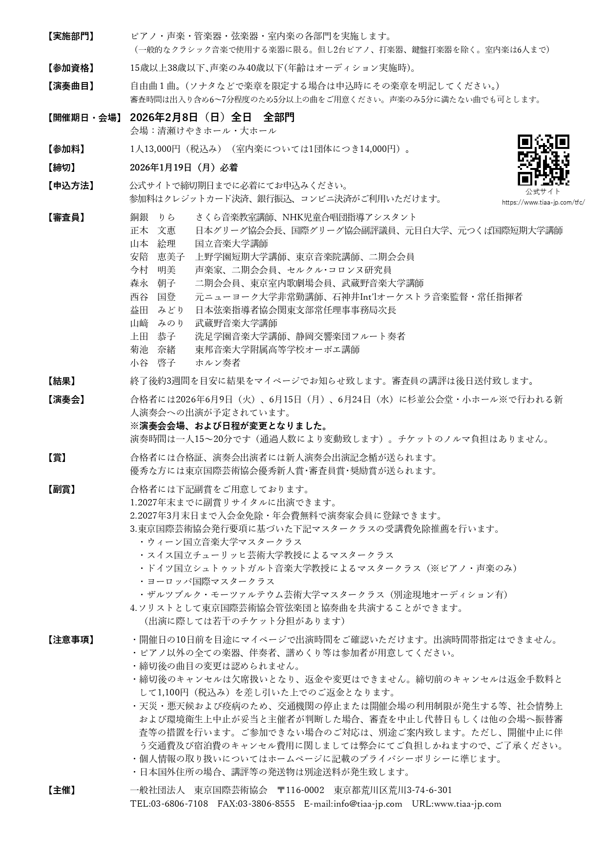 【Pf/声/管/弦/室内楽】第94回 東京国際芸術協会 新人演奏会オーディション