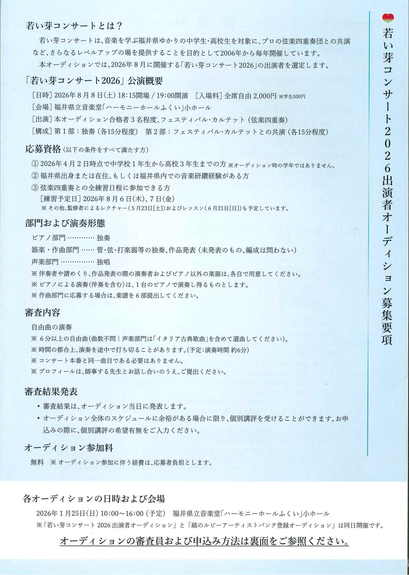 【Pf / 器楽 / 作曲 / 声楽】若い芽コンサート2026 出演者オーディション