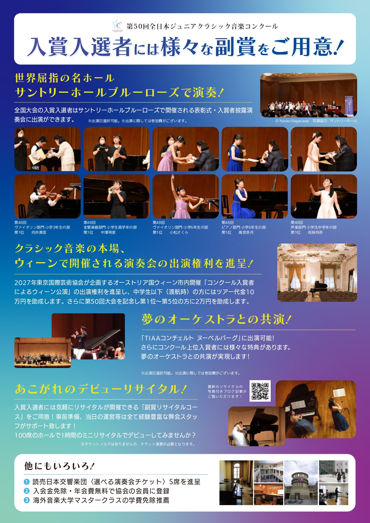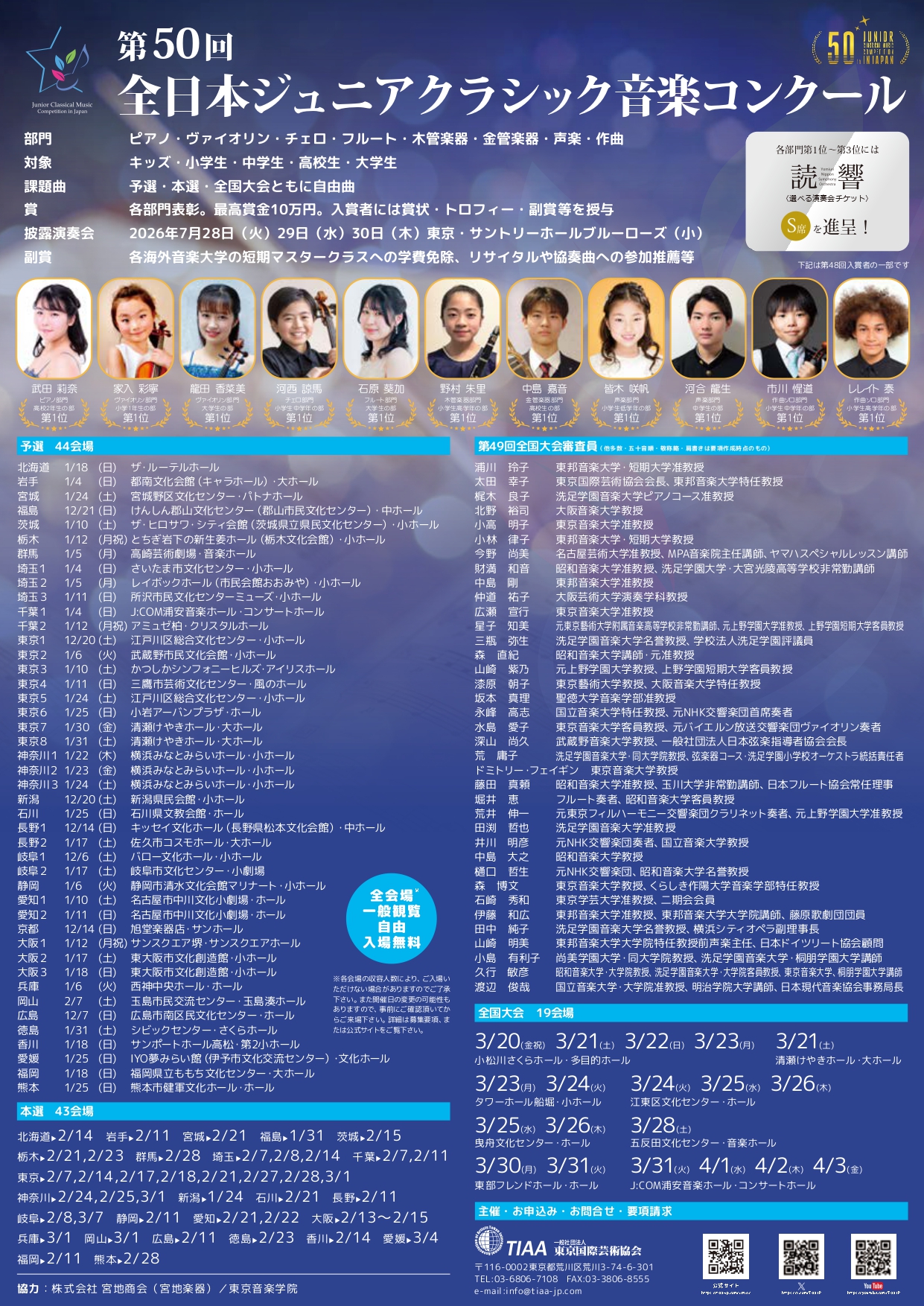 【Pf/Vn/Vc/Fl/木/金/声/作曲・作曲室内楽】第50回全日本ジュニアクラシック音楽コンクール
