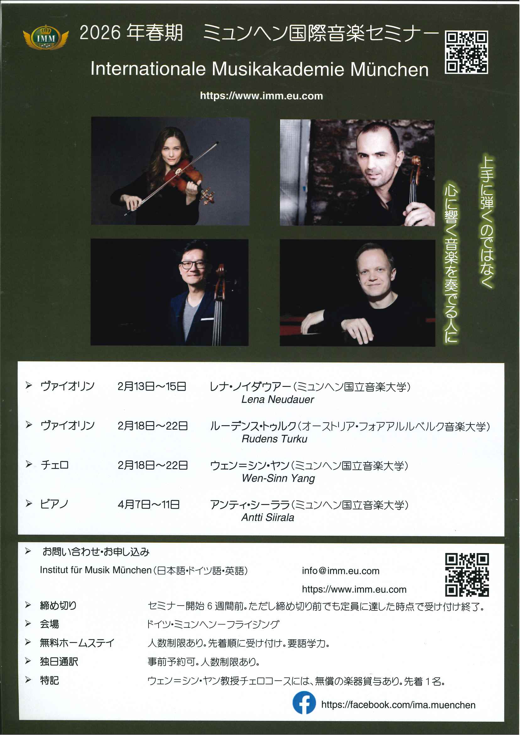 【Vn/Vc/Pf】2026年春期 ミュンヘン国際音楽セミナー