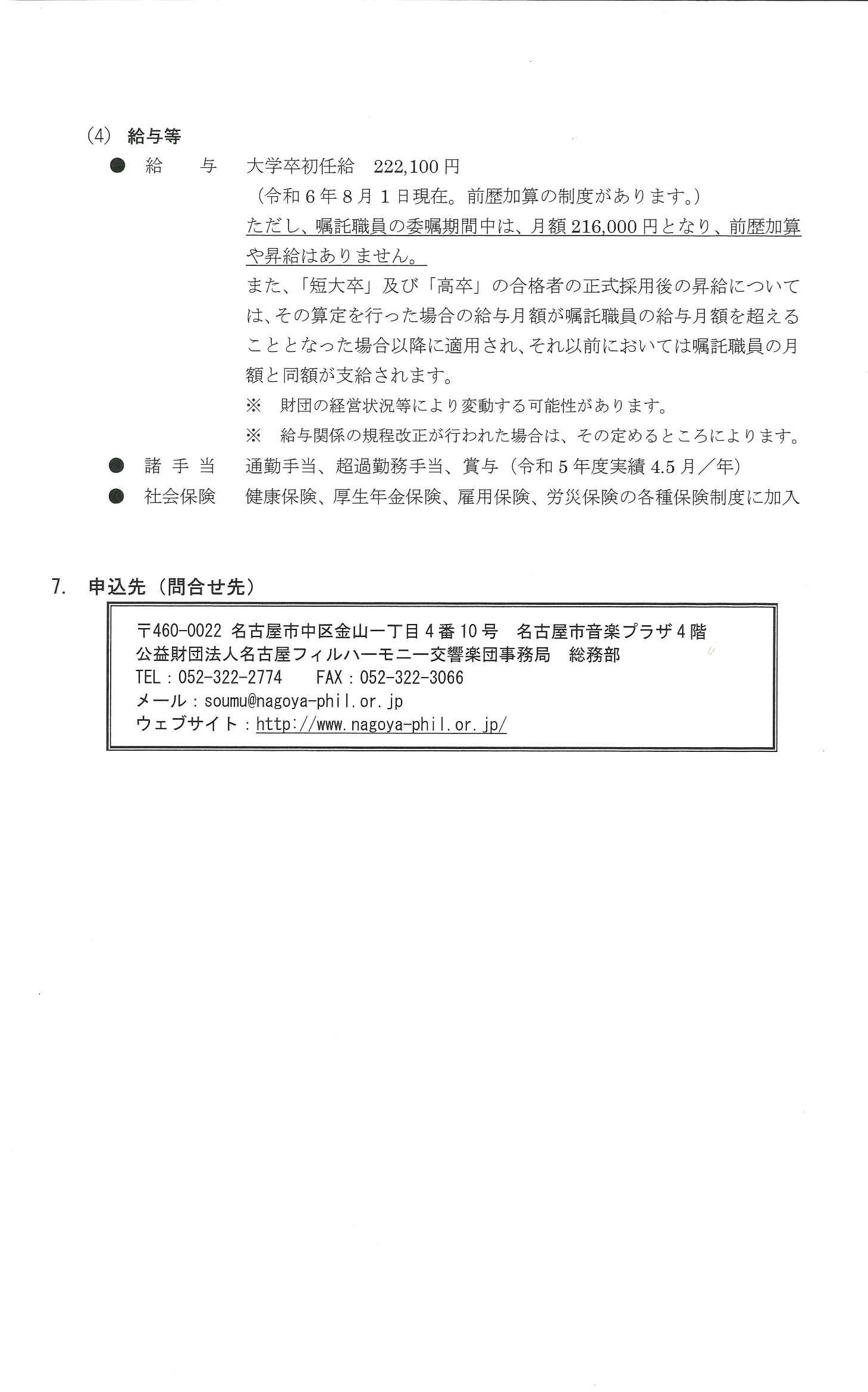 令和6年度公益財団法人名古屋フィルハーモニー交響楽団 職員選考試験要項