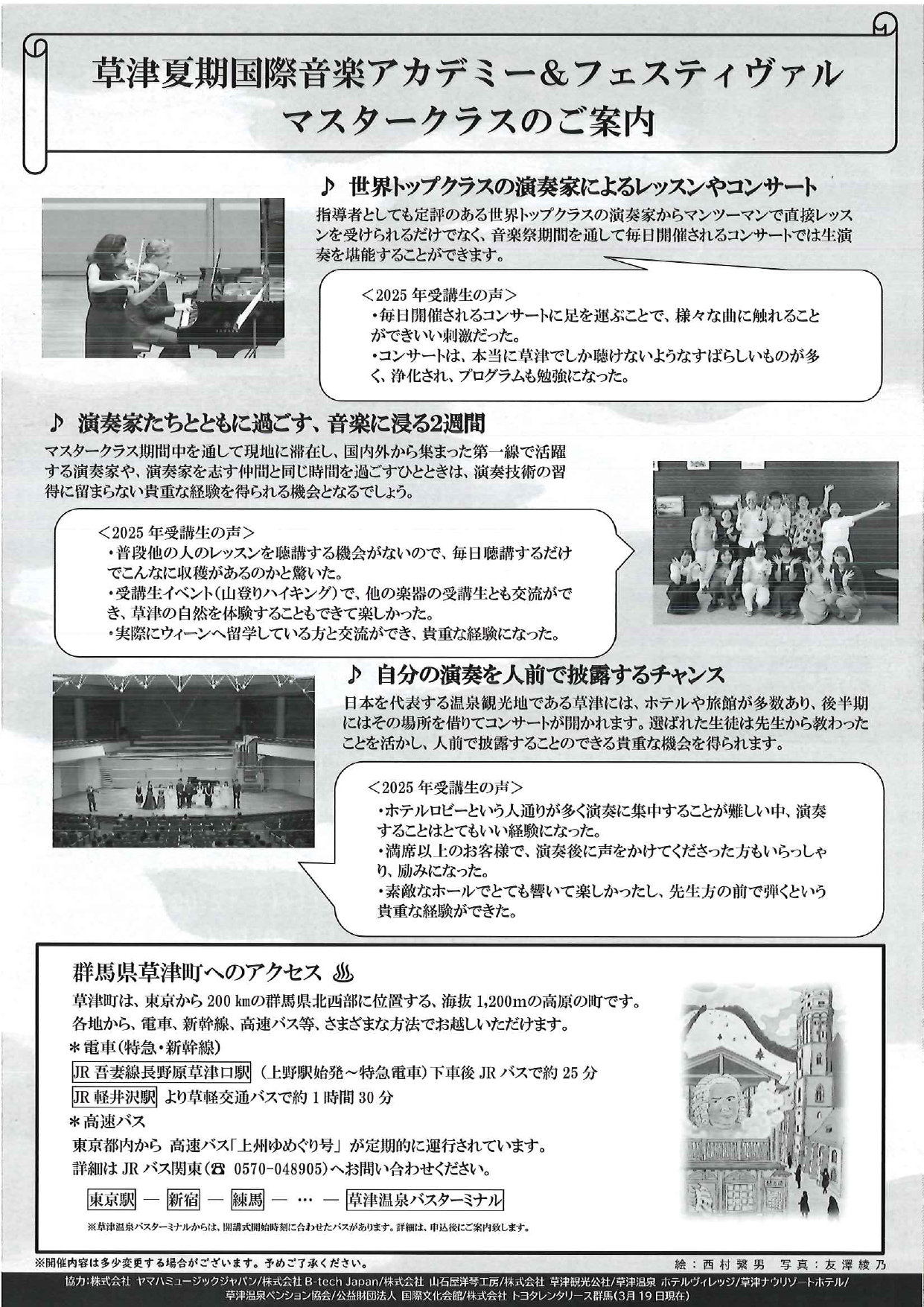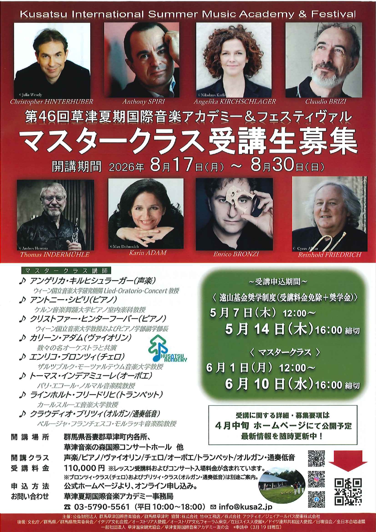 【Vo / Pf / Vn / Vc / Ob / Tp / Org】第46回草津夏期国際音楽アカデミー&フェスティヴァル
