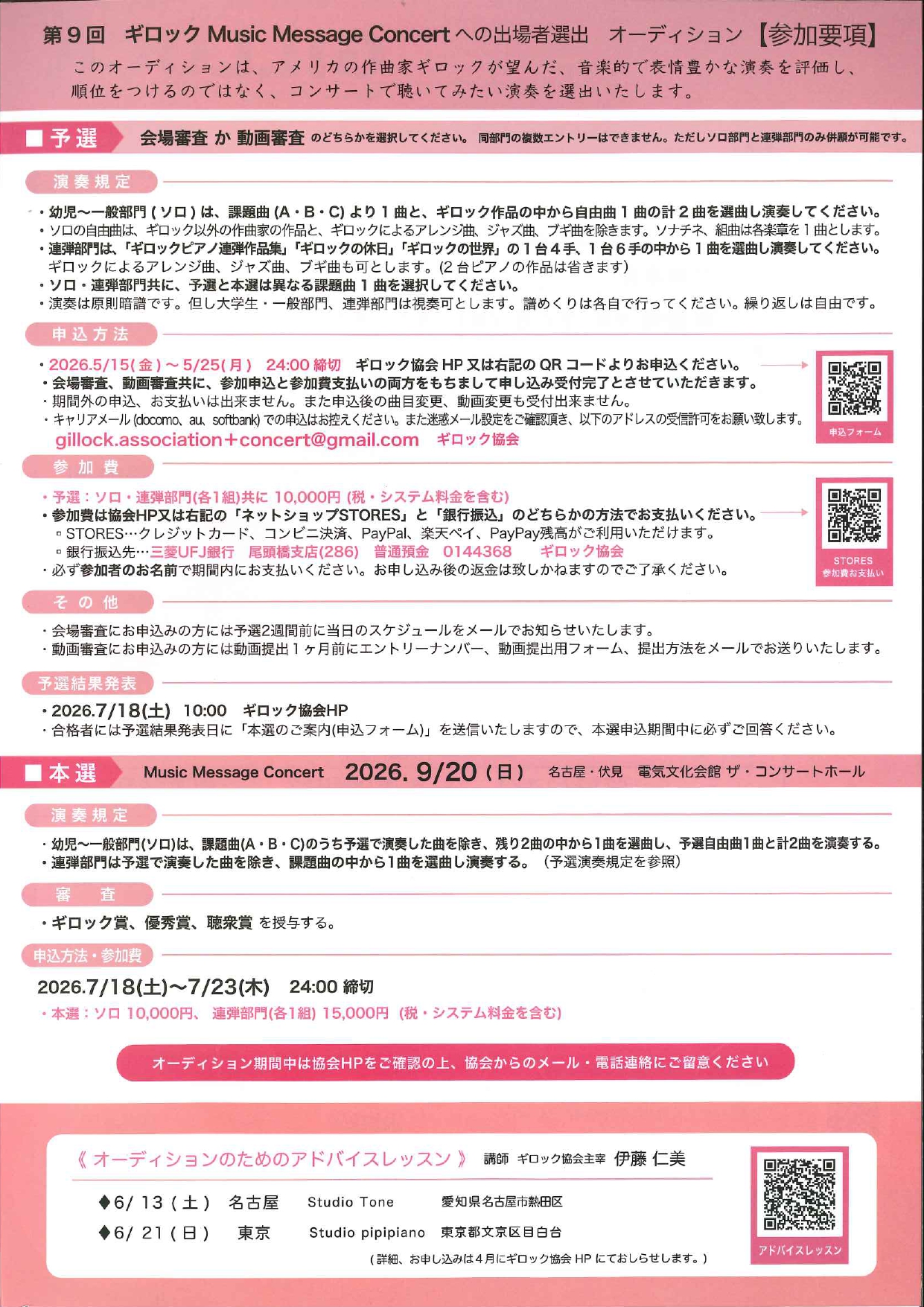 【Pf(ソロ・連弾)】第9回 ギロック オーディション