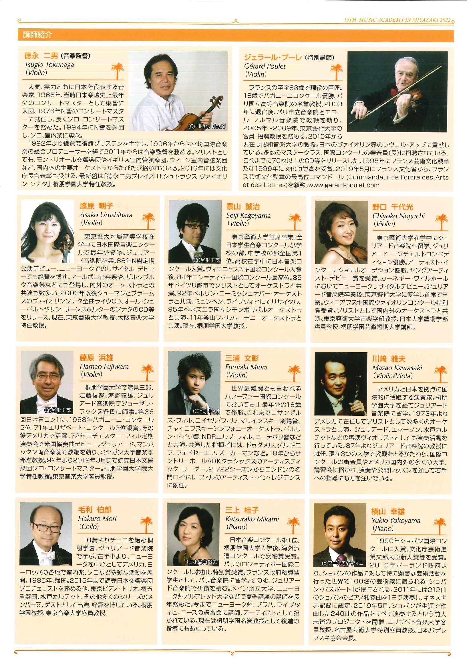 【Pf, Vn, Va, Vc】第15回ミュージック・アカデミーinみやざき2022 受講生募集