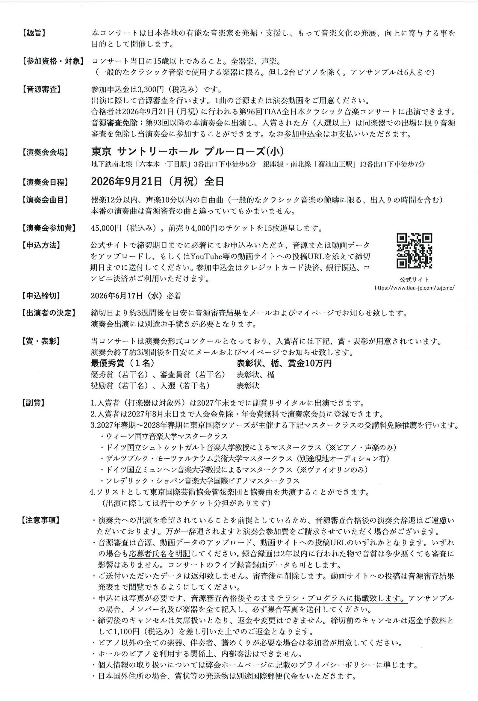 第96回 TIAA全日本クラシック音楽コンクール
