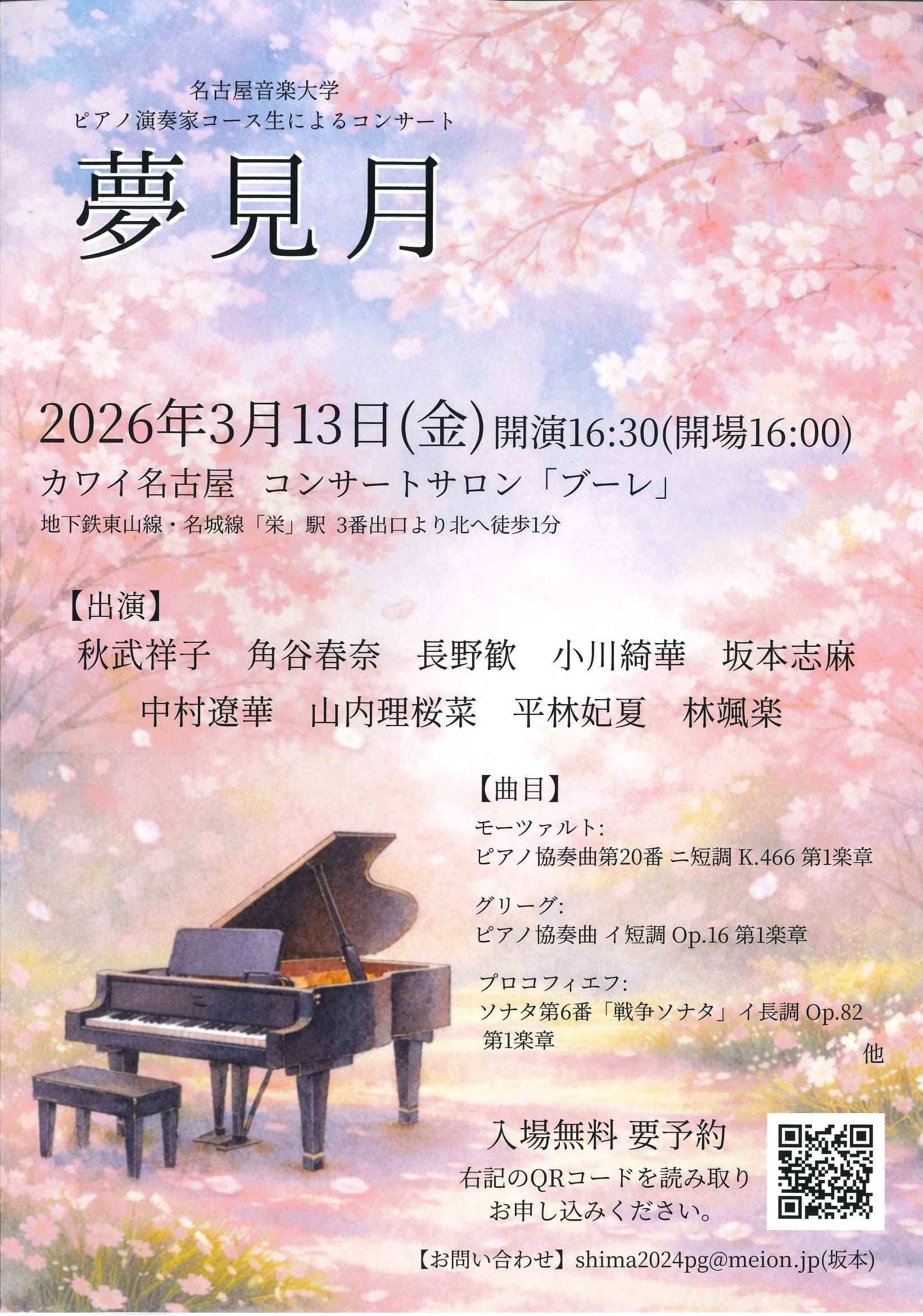 | 出演 | 秋武祥子 角谷春奈 長野歓 小川綺華 坂本志麻 中村遼華 山内理桜菜 平林妃夏 林颯楽 ※出演者全員名古屋音楽大学ピアノ演奏家コース生 |