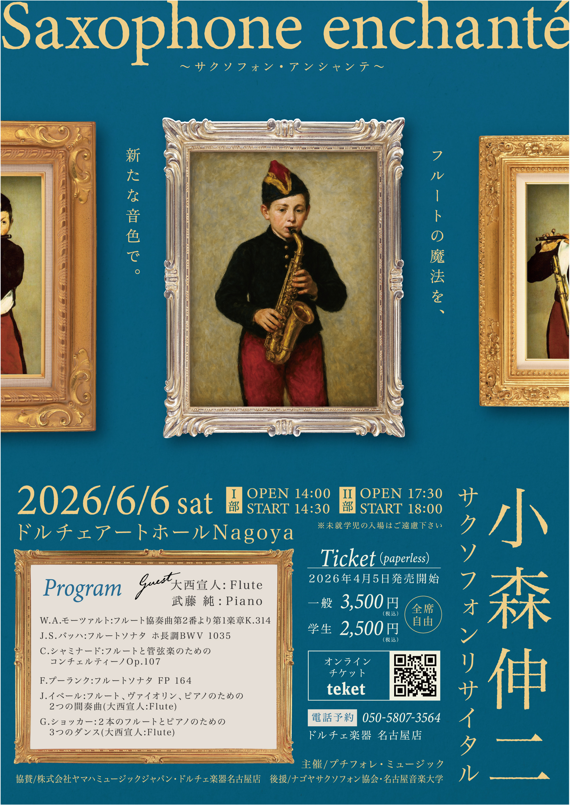 | 申込み先 | オンラインチケットteket https://teket.jp/12990/64252 電話予約:050-5807-3564ドルチェ楽器名古屋店 |