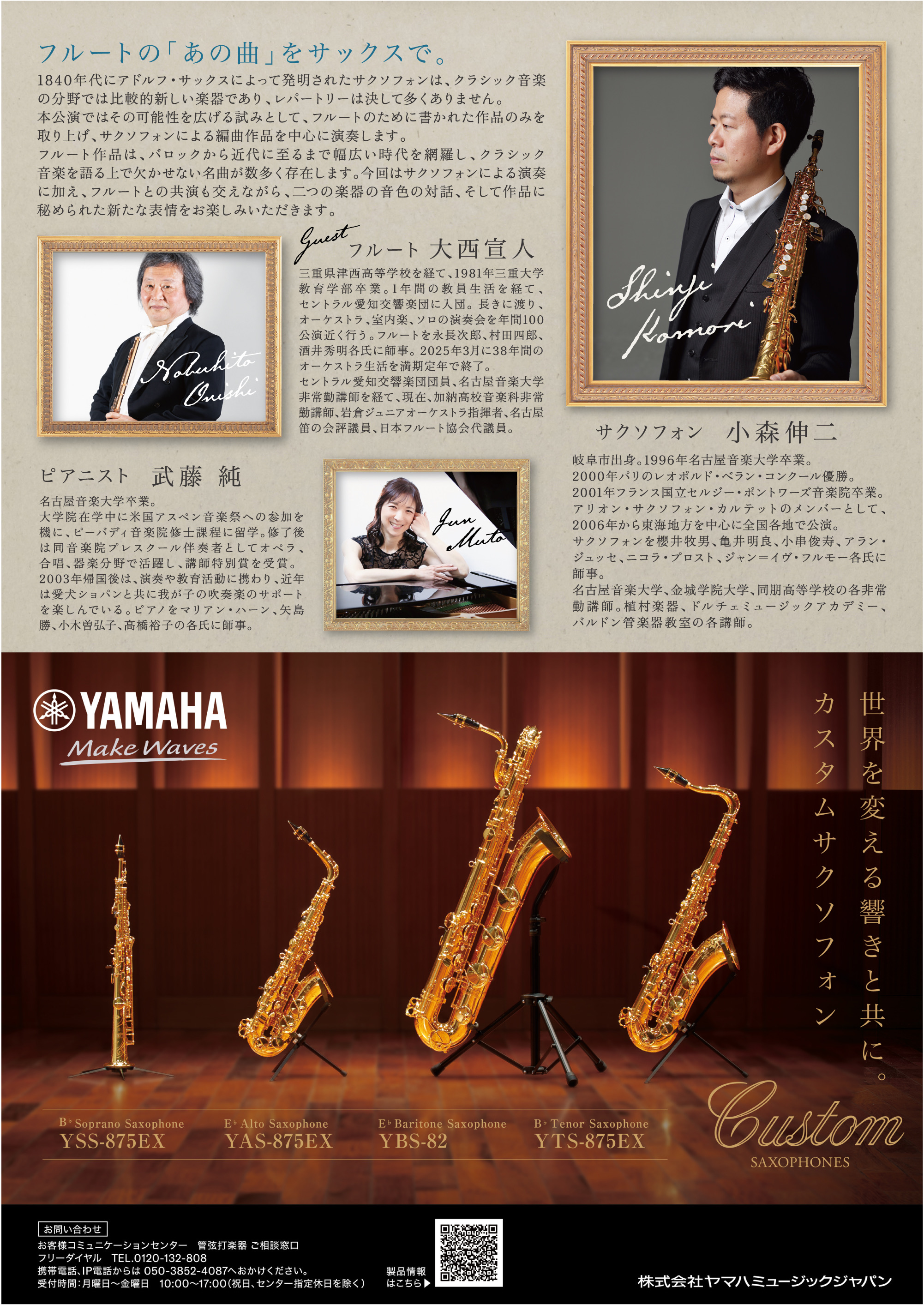 | 出演 | サクソフォン:小森伸二《本学教員》 フルート:大西宣人 ピアノ:武藤純 |