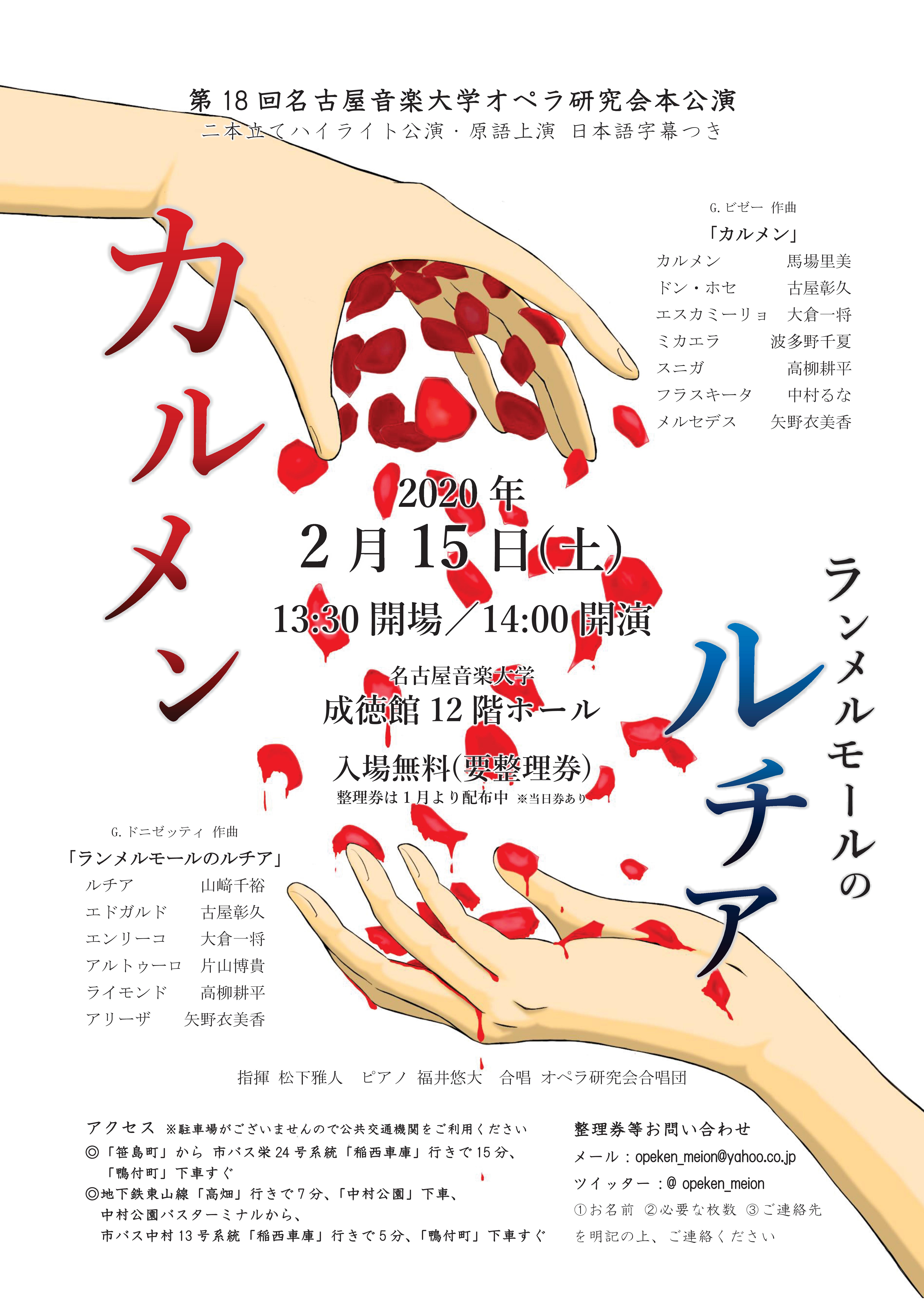 第18回名古屋音楽大学オペラ研究会本公演 カルメン ランメルモールのルチア