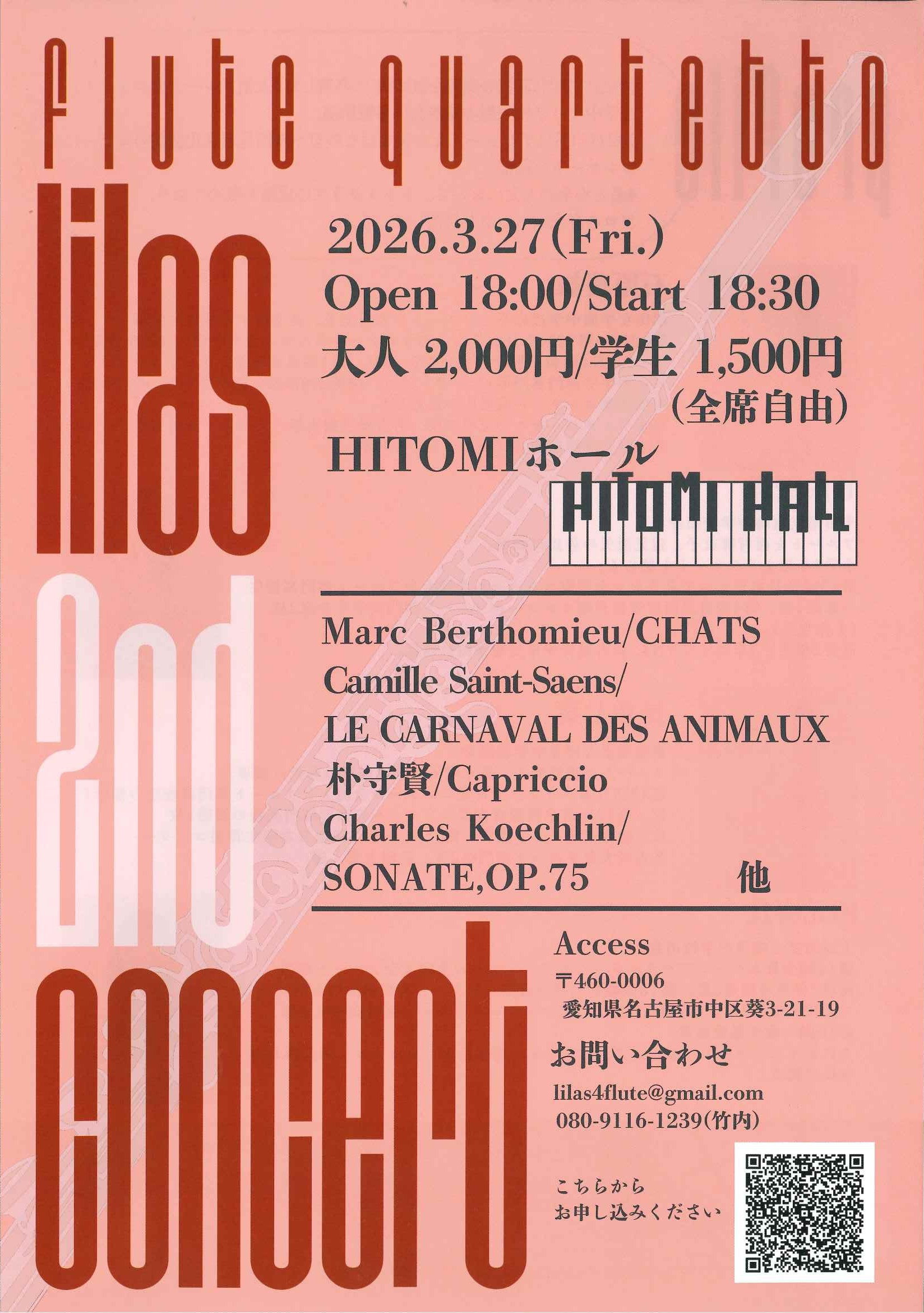 TEL : 080-9116-1239 Mail : lilas4flute@gmail.com |
