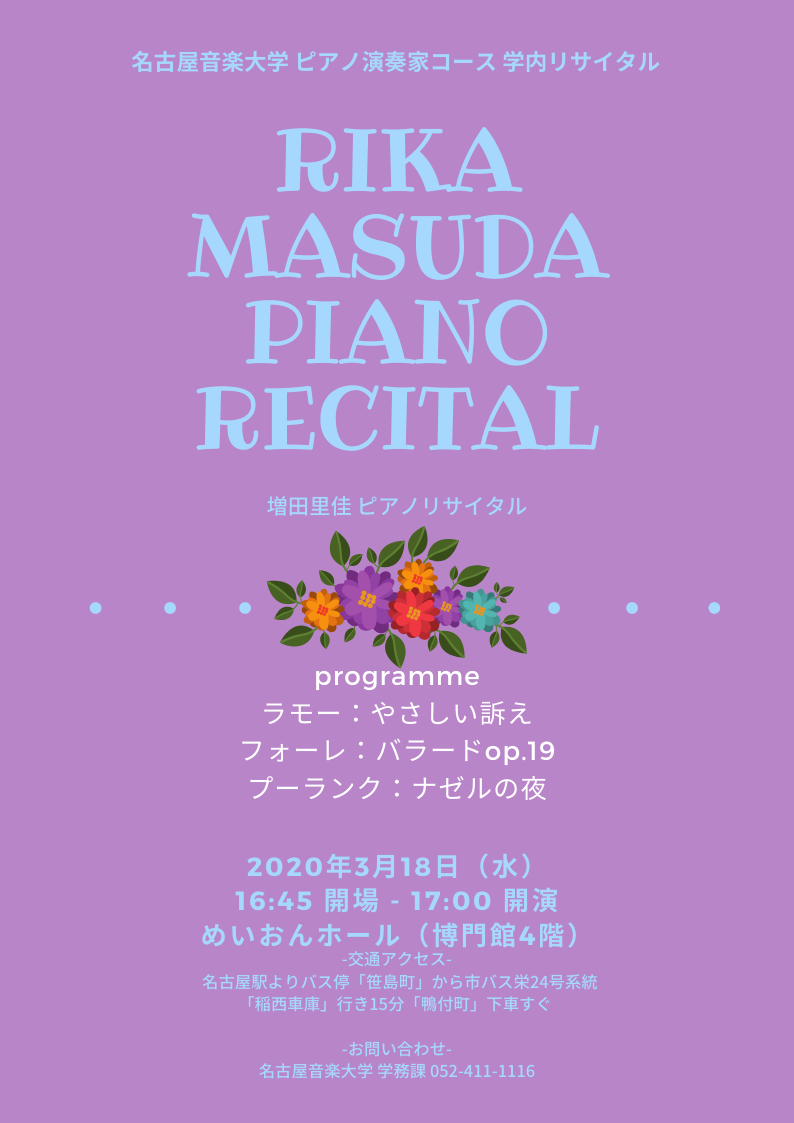 名古屋音楽大学 演奏家コース学内リサイタル 増田 里佳 ピアノリサイタル