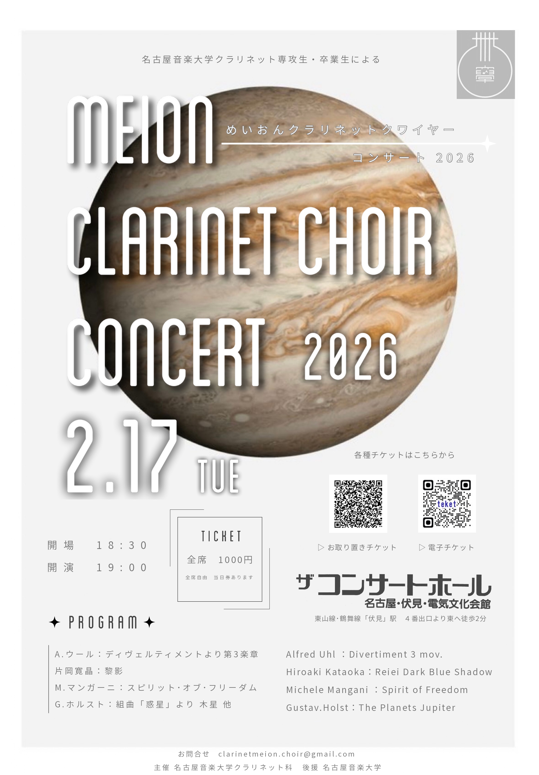 | 主催 | 名古屋音楽大学クラリネット科 |