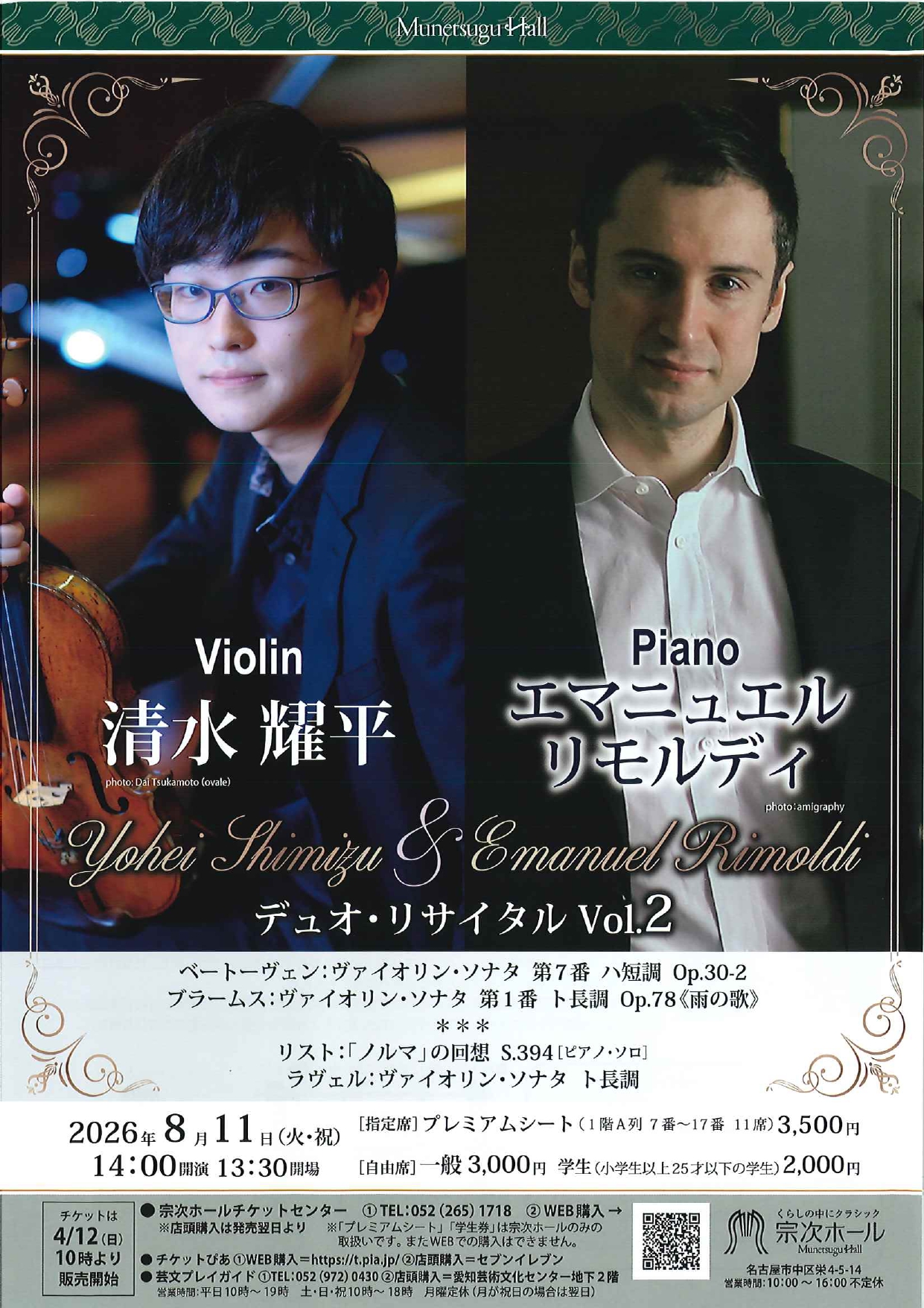 ①TEL:052-265-1718②WEB購入はこちら ※「プレミアムシート」「学生券」は宗次ホールのみの取り扱いとなります。 またWEBでの購入はできません。