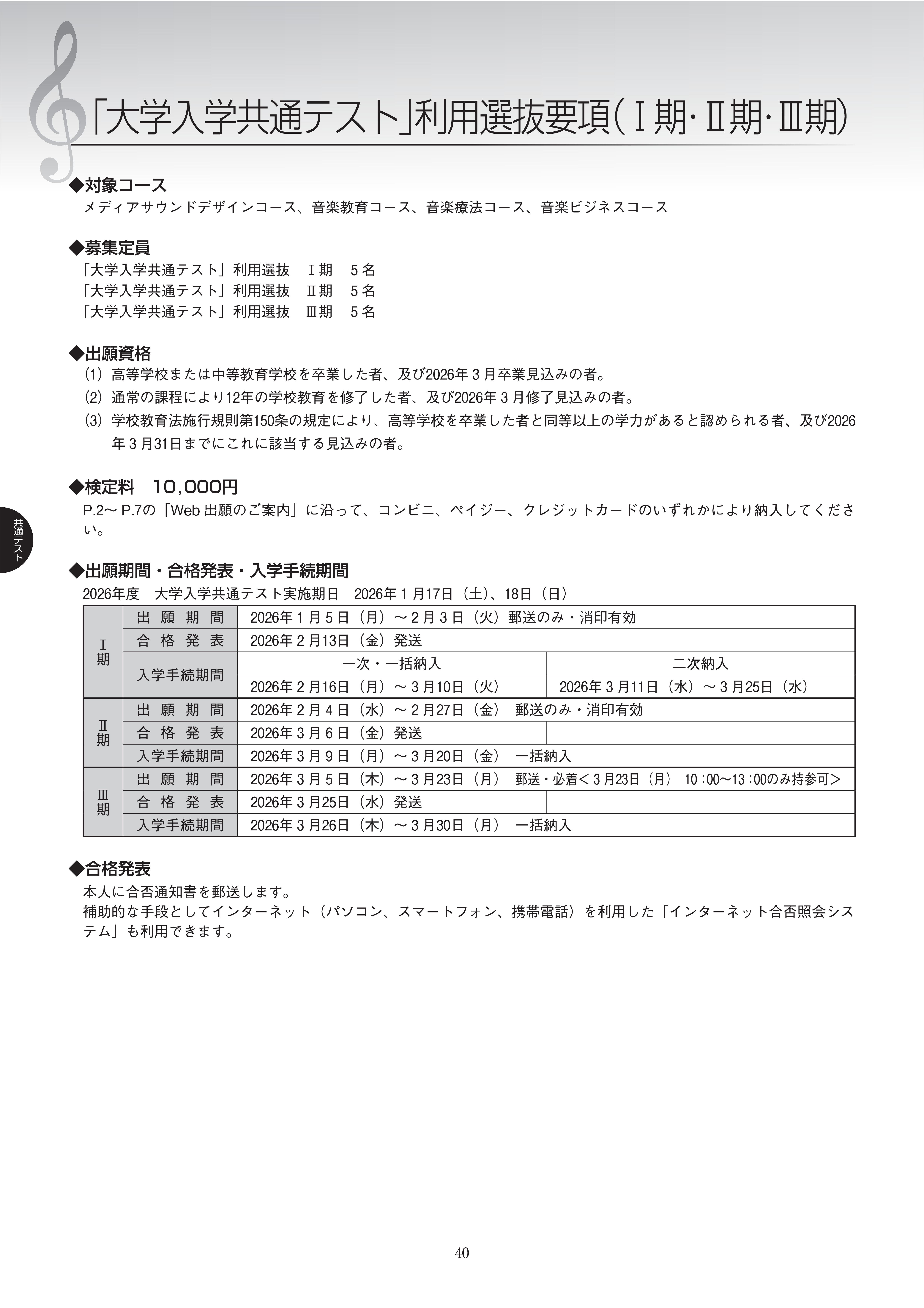 ◆対象コース メディアサウンドデザインコース、音楽教育コース、音楽療法コース、音楽ビジネスコース